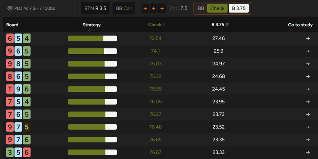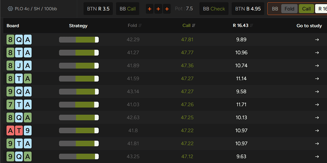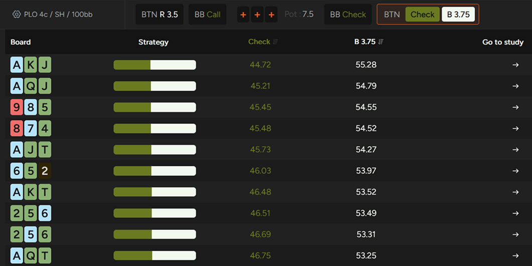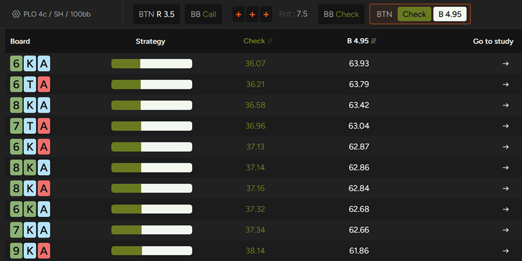 Finally, Aggregate Reports in PLO Genius allow you to move from a broad category view to a specific board in seconds. You can quickly verify the exact strategy for any texture and study it in more detail whenever needed.